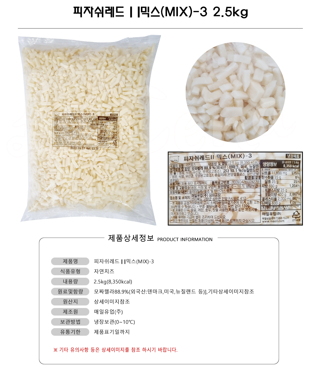 (주) 백두 피자쉬레드ㅣㅣ 믹스(MIX)-3 [자연치즈88.9%] 2.5KGX4EA (1BOX판매)