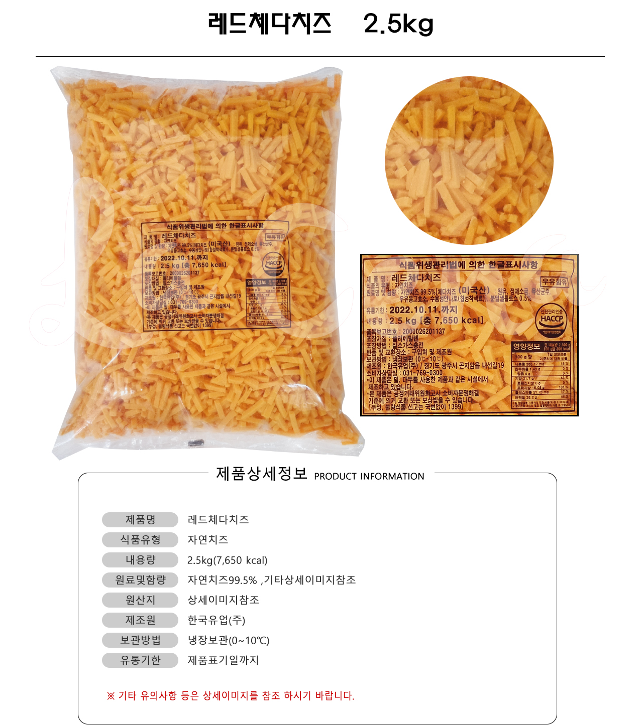 (주) 백두 레드체다치즈 [자연치즈 99.5%] 2.5KGX4EA (1BOX판매)