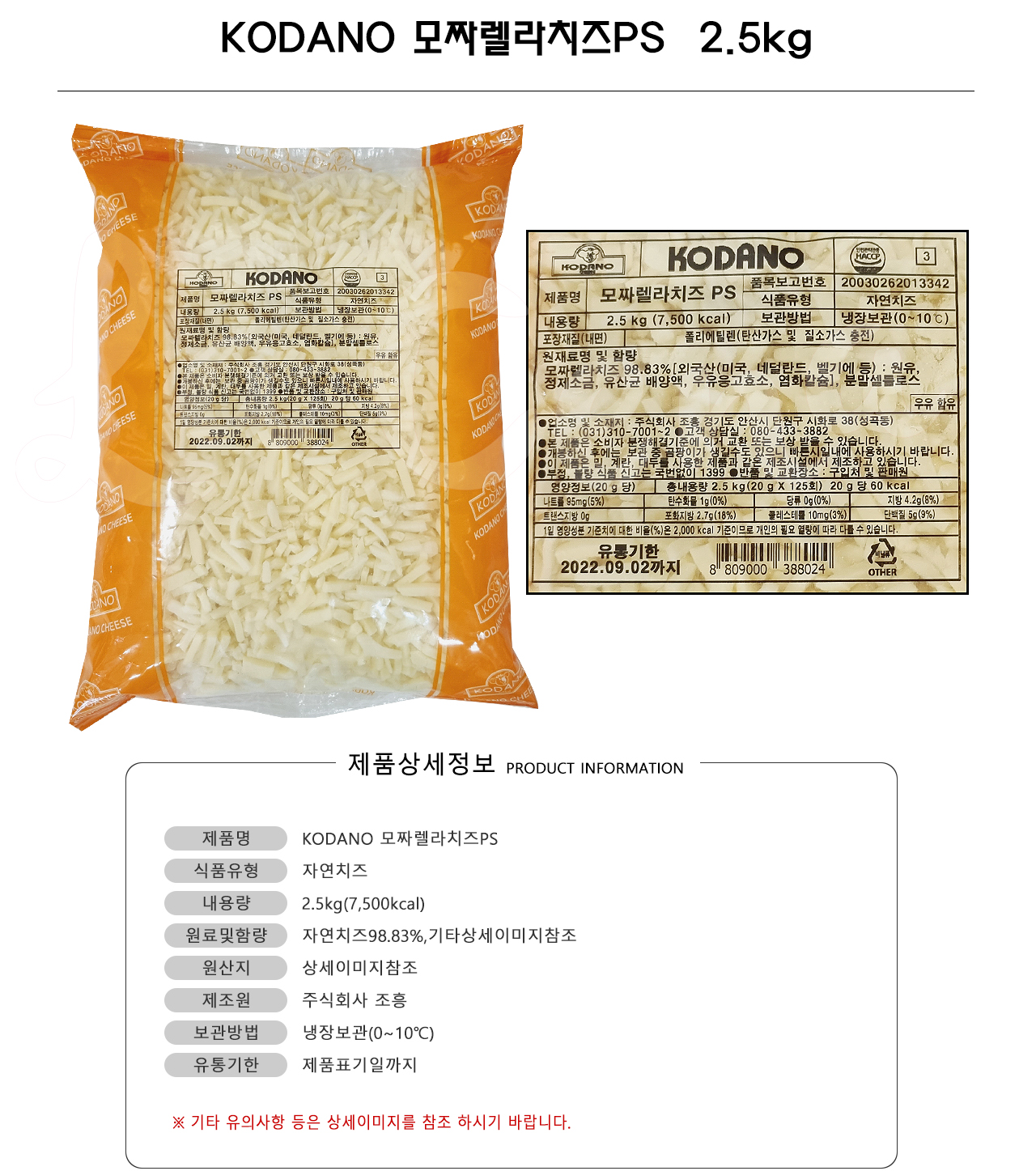 KODANO 모짜렐라치즈PS [자연치즈98.83%]
