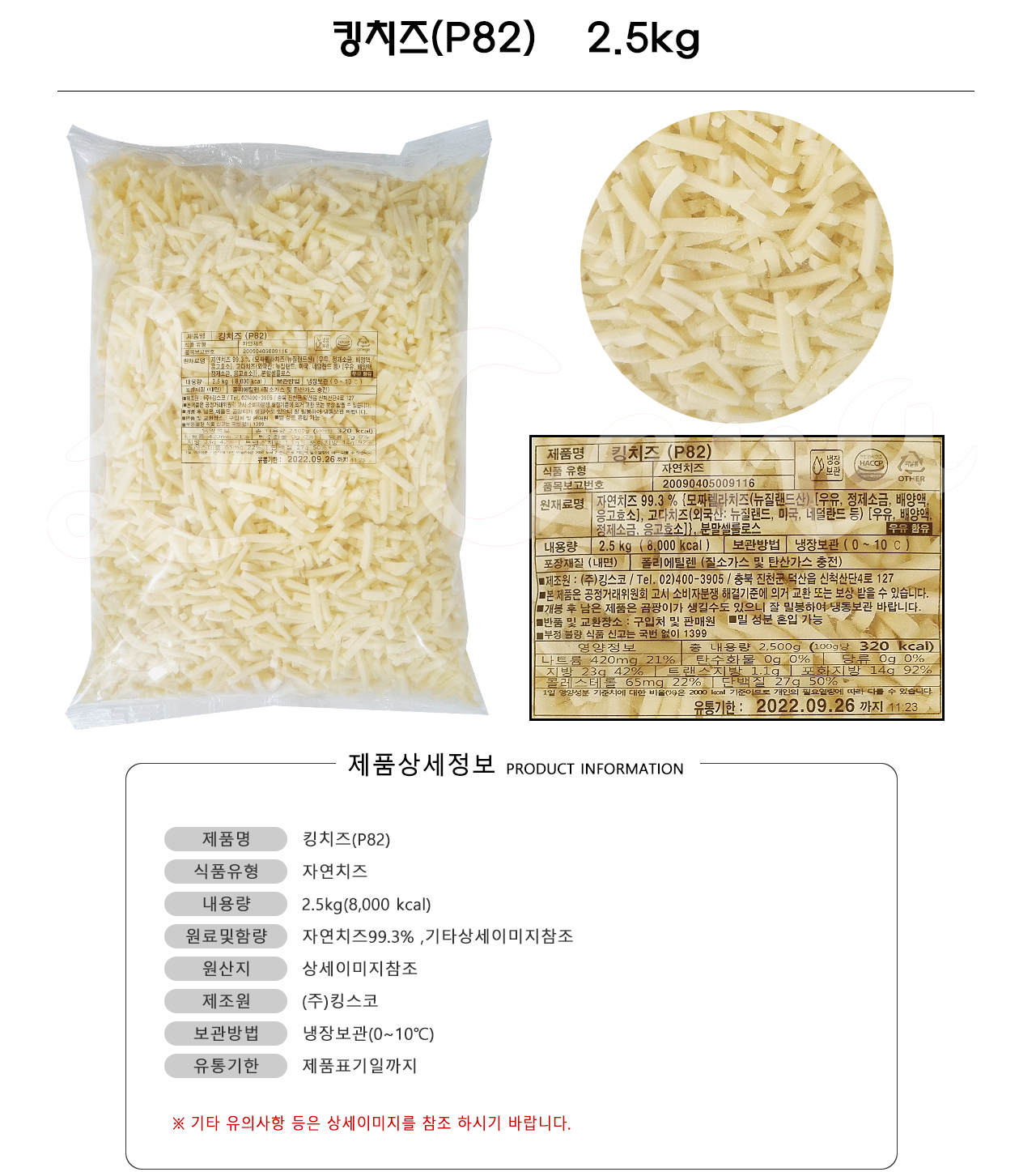 (주) 백두 킹치즈(P82) [자연치즈 99.3%] 2.5KGX4EA (1BOX판매)