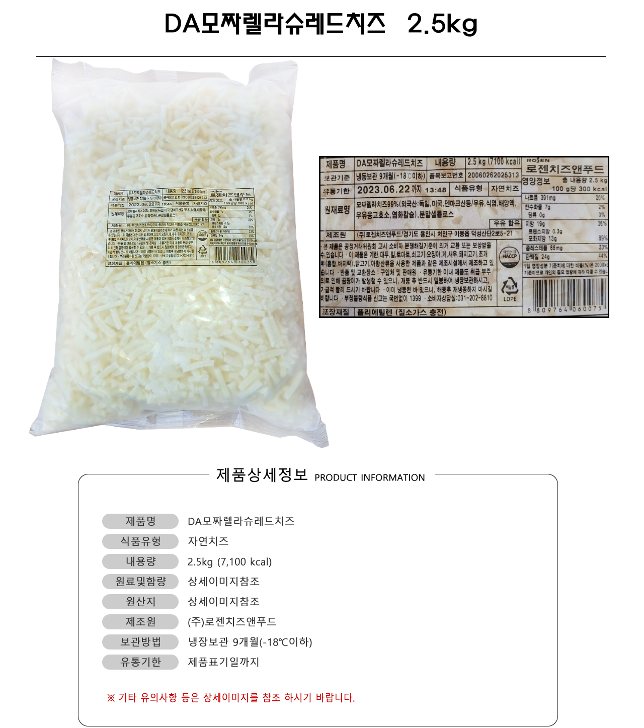 (주) 백두 DA모짜렐라슈레드치즈 2.5KGX4EA (1BOX판매)