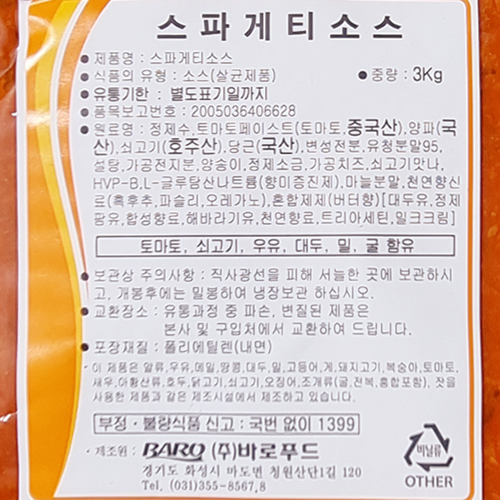 (주) 백두 스파게티소스 토마토 스파게티용 소스