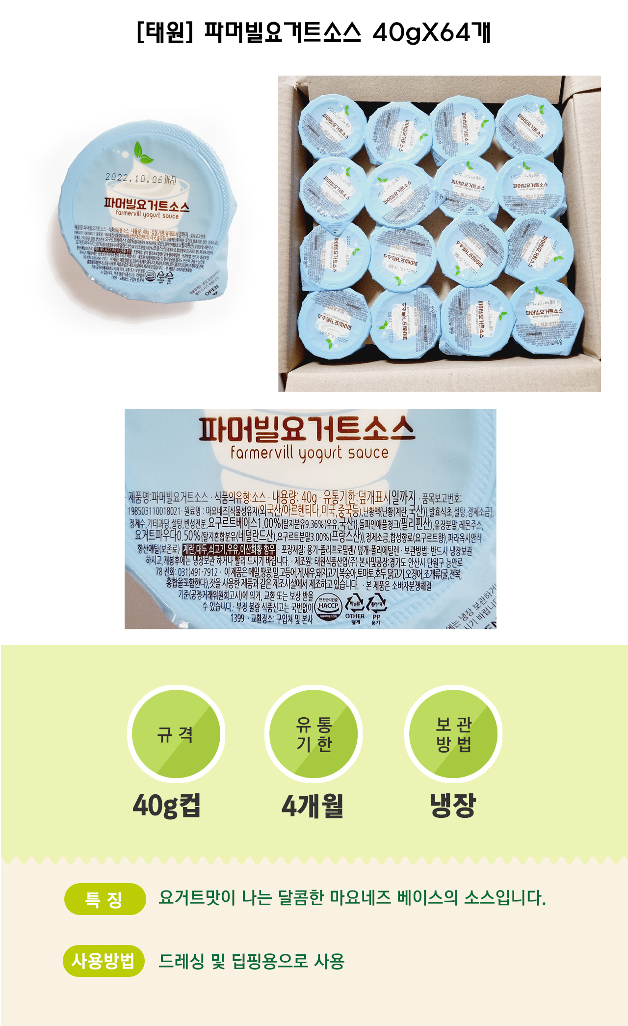 (주) 백두 [태원] 파머빌요거트소스 40gX64개 1박스 상품