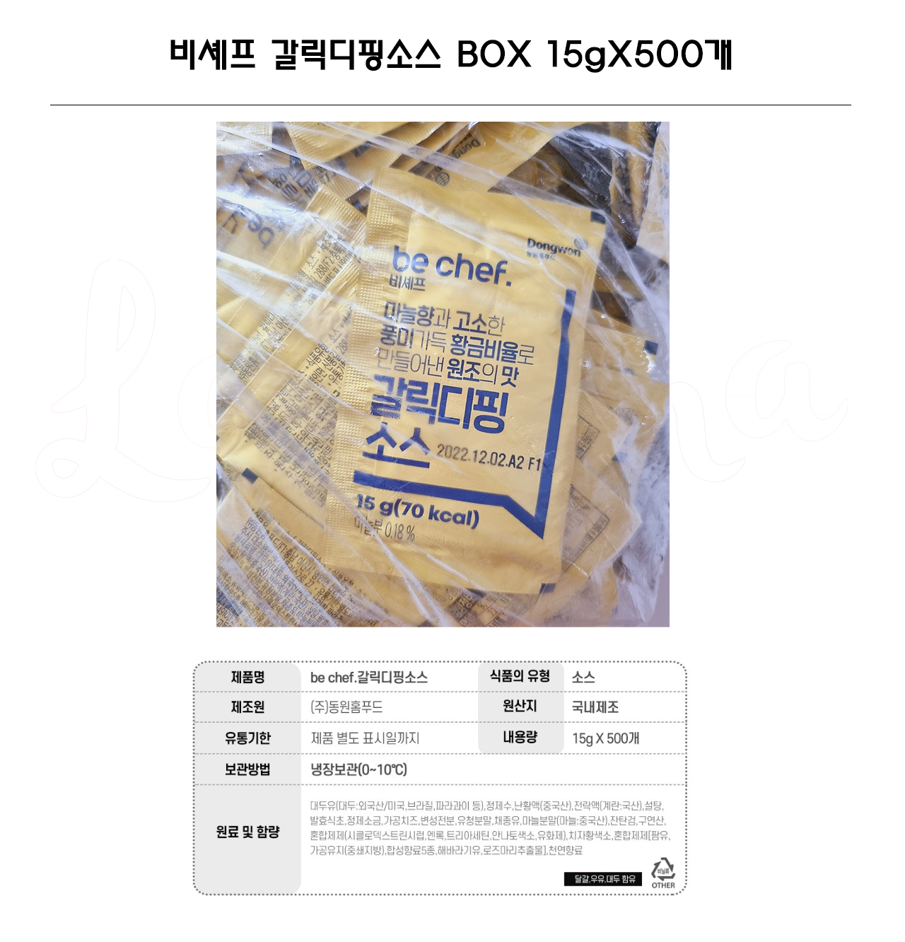 (주) 백두 비셰프 갈릭디핑소스 15gX500개 업소용 파우치