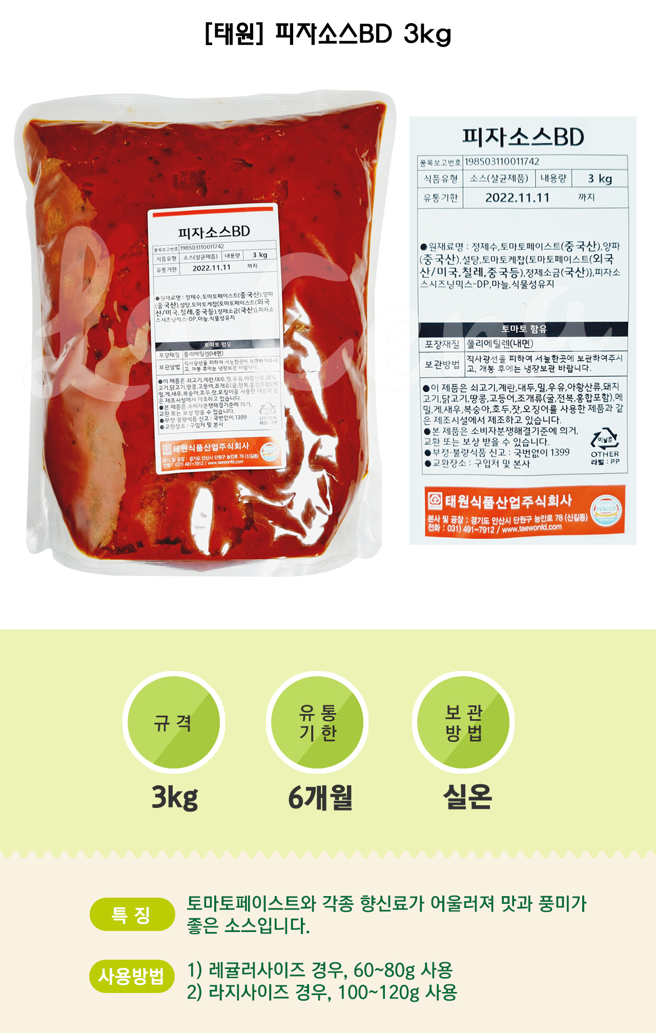 (주) 백두 [태원] 피자소스BD ★ 피자소스/실온 ★