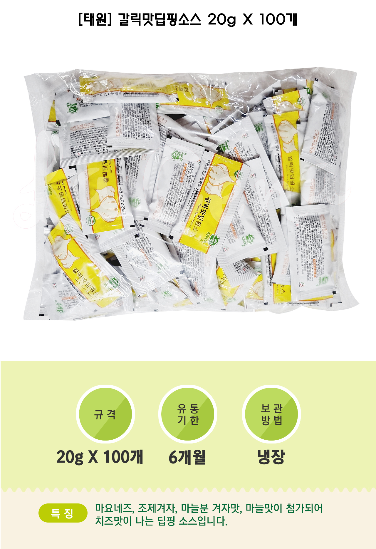(주) 백두 [태원] 갈릭맛딥핑소스 20g 20gX100개 1박스 상품
