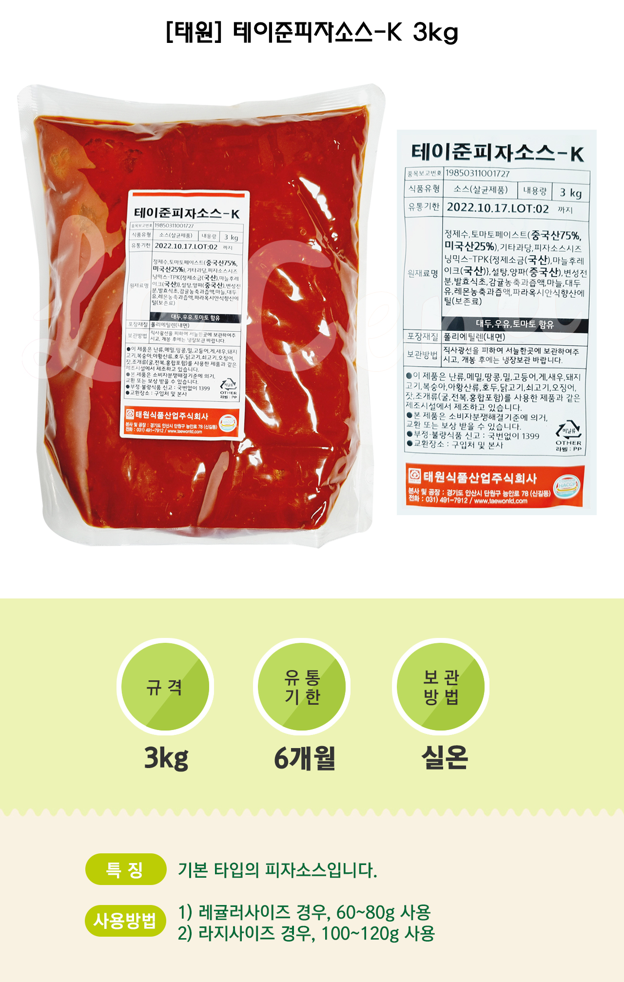 (주) 백두 [태원] 테이준피자소스-K ★ 피자소스/실온 ★