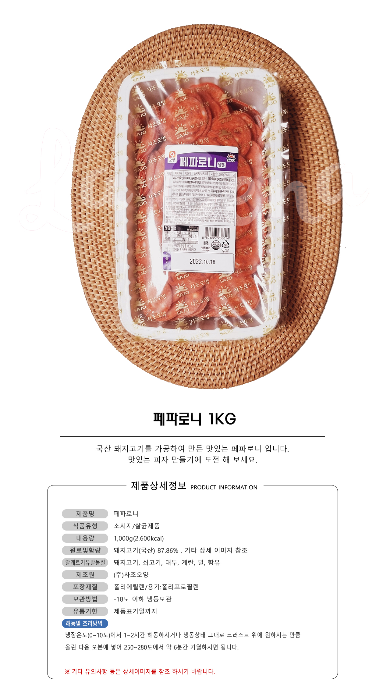국산 돼지고기로 만든 페파로니