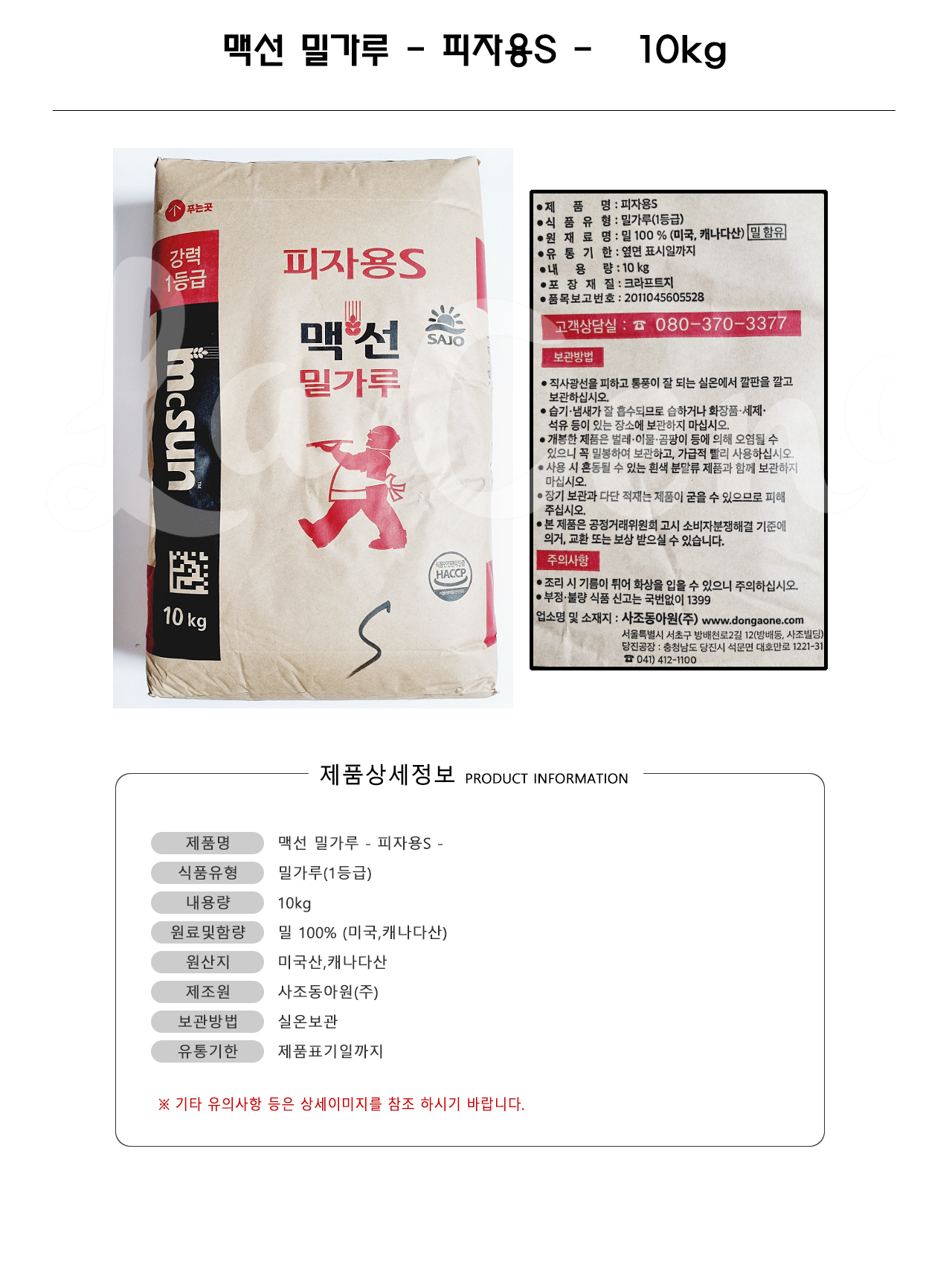 (주) 백두 맥선 밀가루 - 피자용S - -- 10kg 1등급 밀가루 --