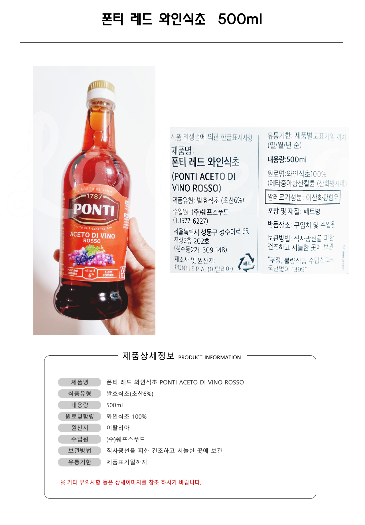 (주) 백두 폰티 레드 와인식초 PONTI ACETO DI VINO ROSSO