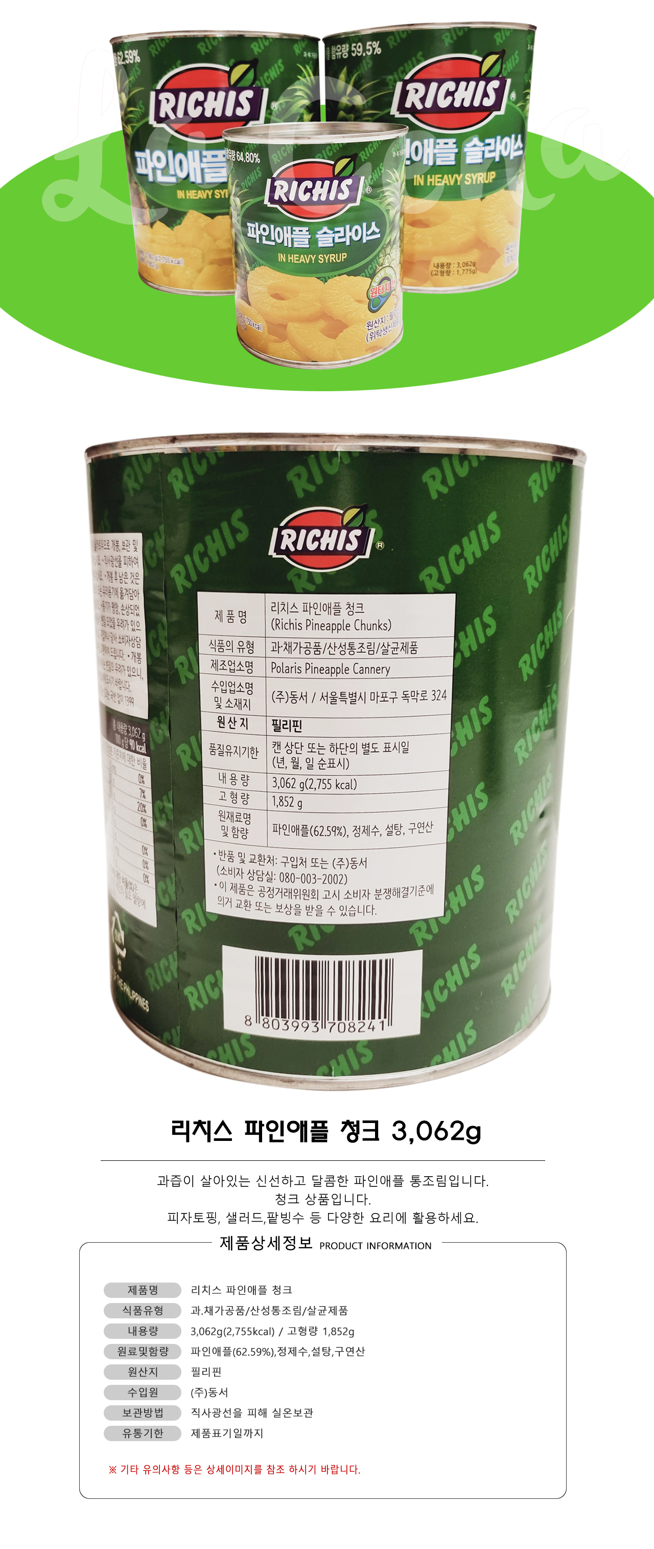 (주) 백두 [대용량] 리치스 파인애플 청크 대용량 상품입니다.