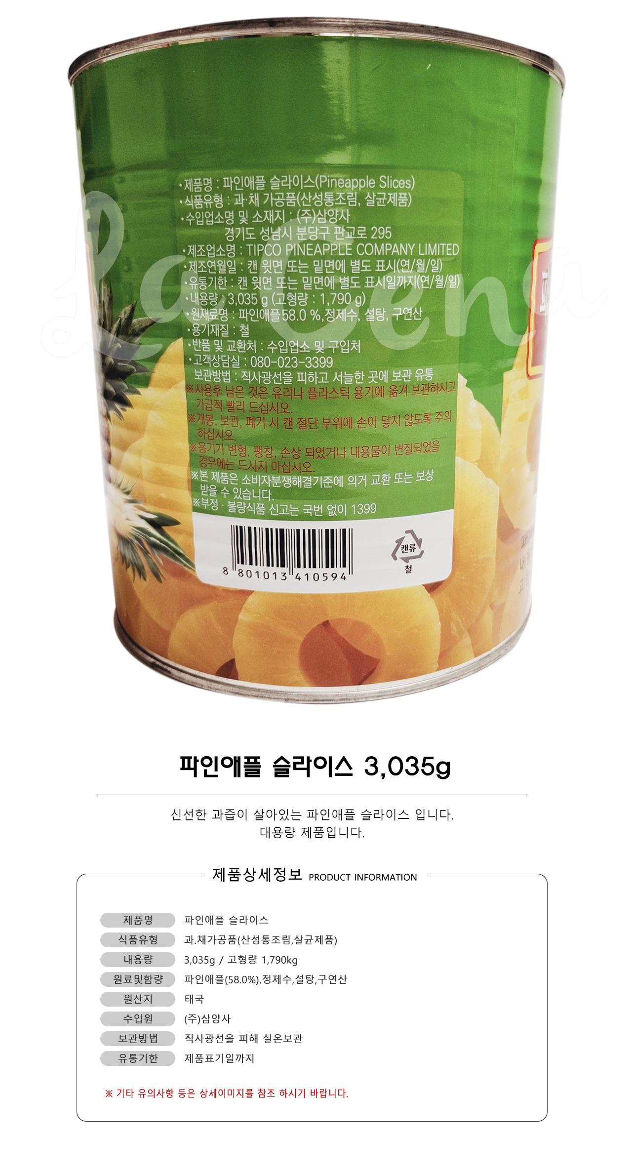 (주) 백두 [대용량]파인애플 슬라이스 대용량 상품입니다.