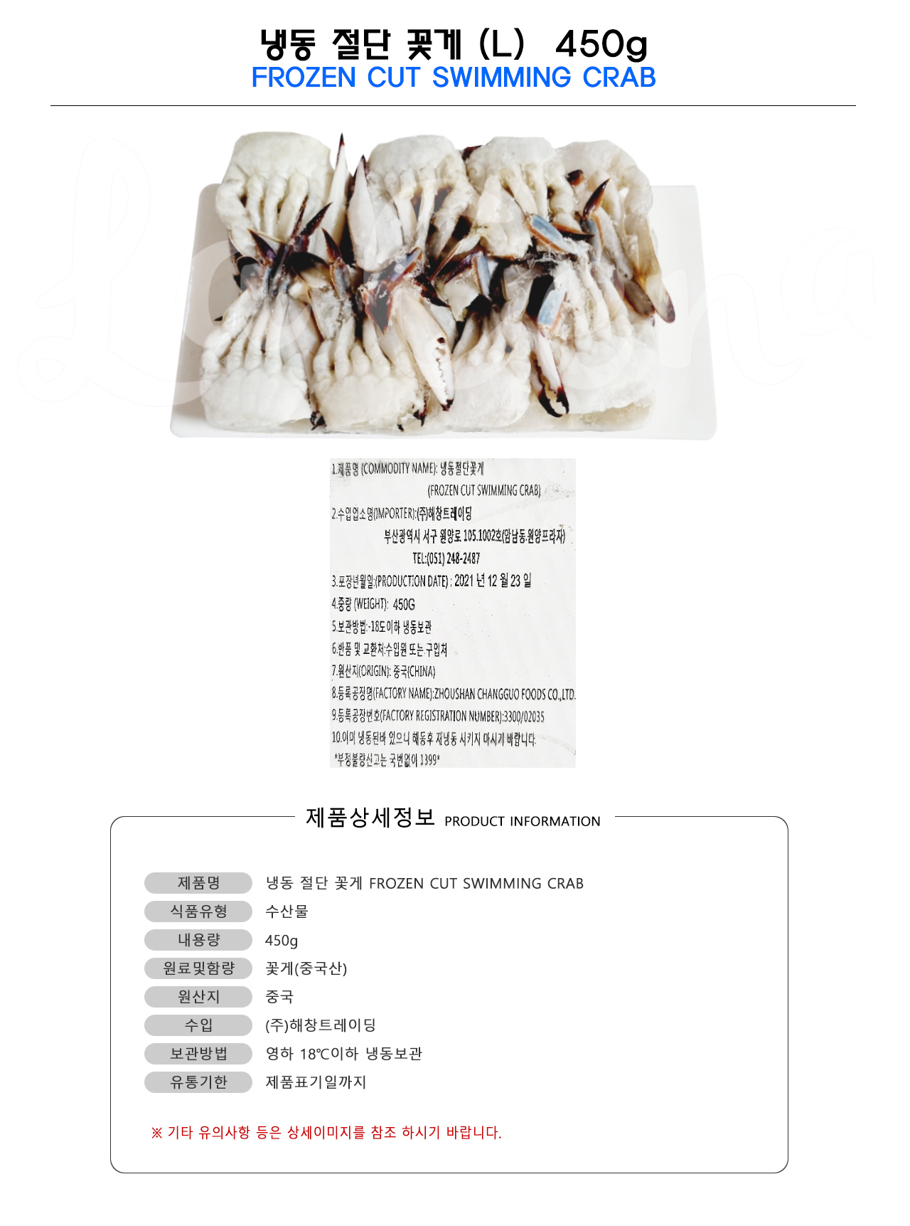 (주) 백두 냉동 절단 꽃게 (L) FROZEN CUT SWIMMING CRAB