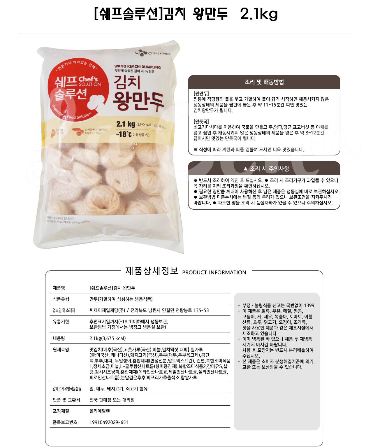 (주) 백두 [쉐프솔루션]김치 왕만두 김치28%함유