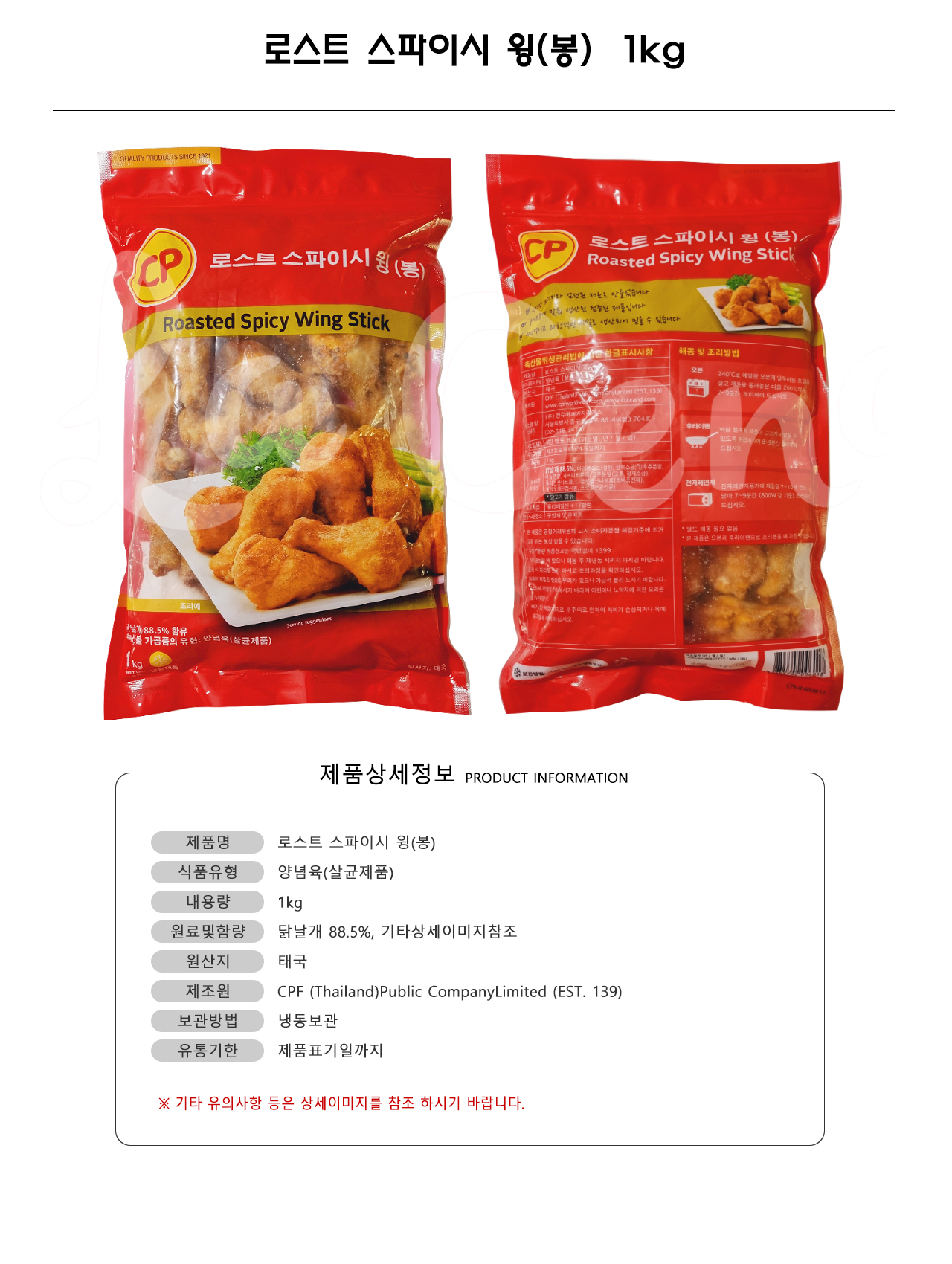(주) 백두 로스트 스파이시 윙(봉) --냉동육--